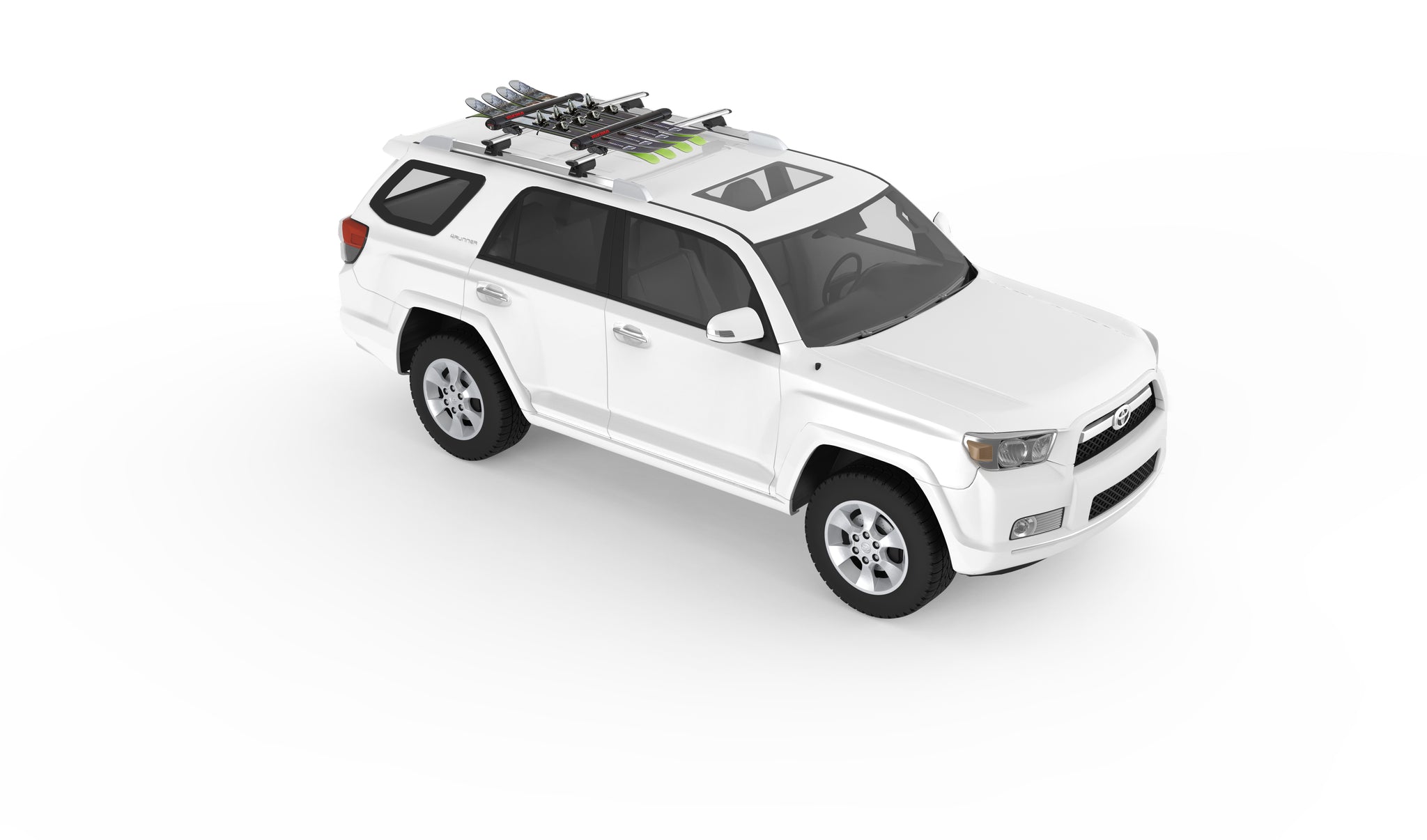 - Easily carries four pair of skis - up to 136 mm wide at the tip - or two snowboards