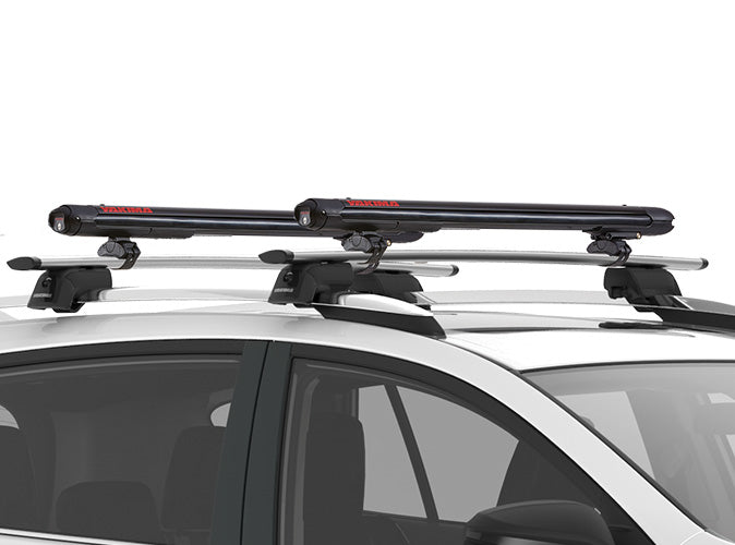 The FatCat EVO is our sleekest, quietest, and sweetest ski & snowboard mount. It is wide enough to carry six pairs of powder skis up to 136 mm at the tip or four snowboards. FatCat EVO mounts tool-free on virtually any roof rack. The HangOver clamp attachment point makes it easier to reach your skis or boards. SKS locks are built in for added security, and the mirror black finish looks awesome on your roof. For T-Slot crossbars, add the SmarT-Slot Kit 2 for a super sleek setup (sold separately).
